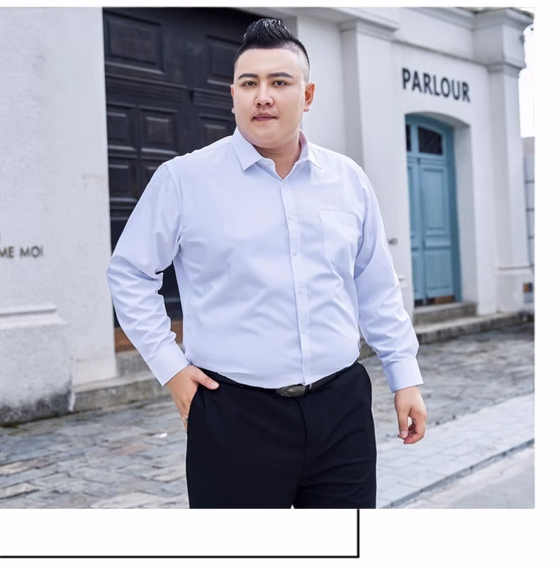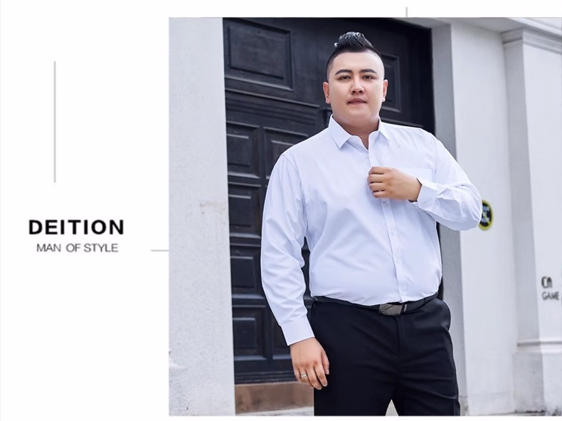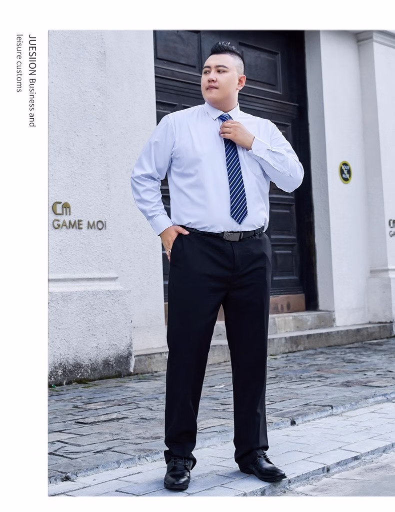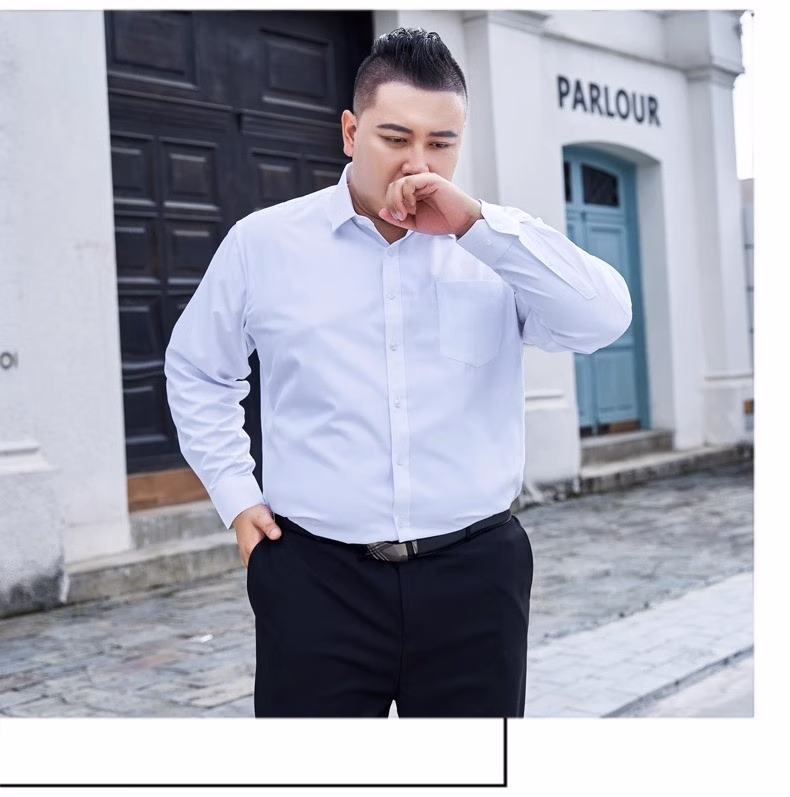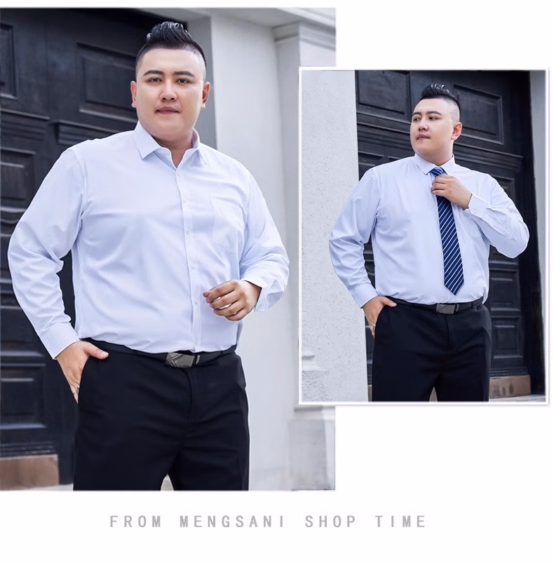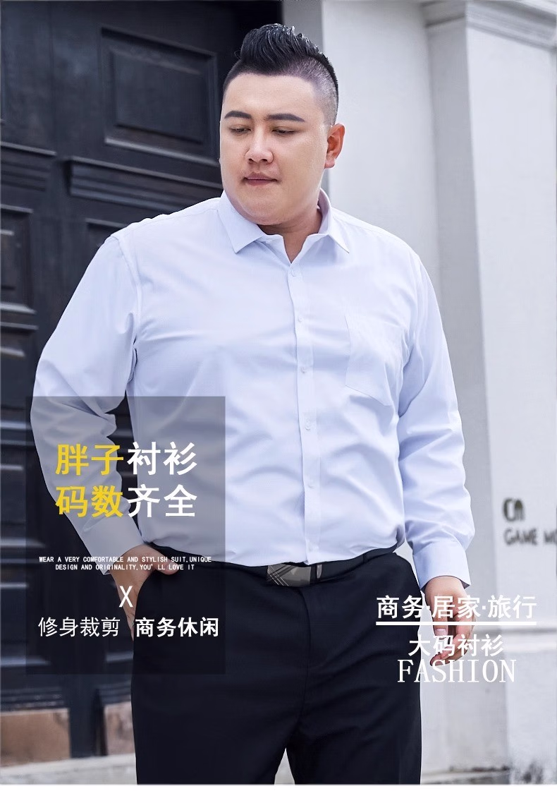 衬衫男新款工装纯色衬衫加肥加大码胖子男士衬衣 白色(精品大码) 长袖